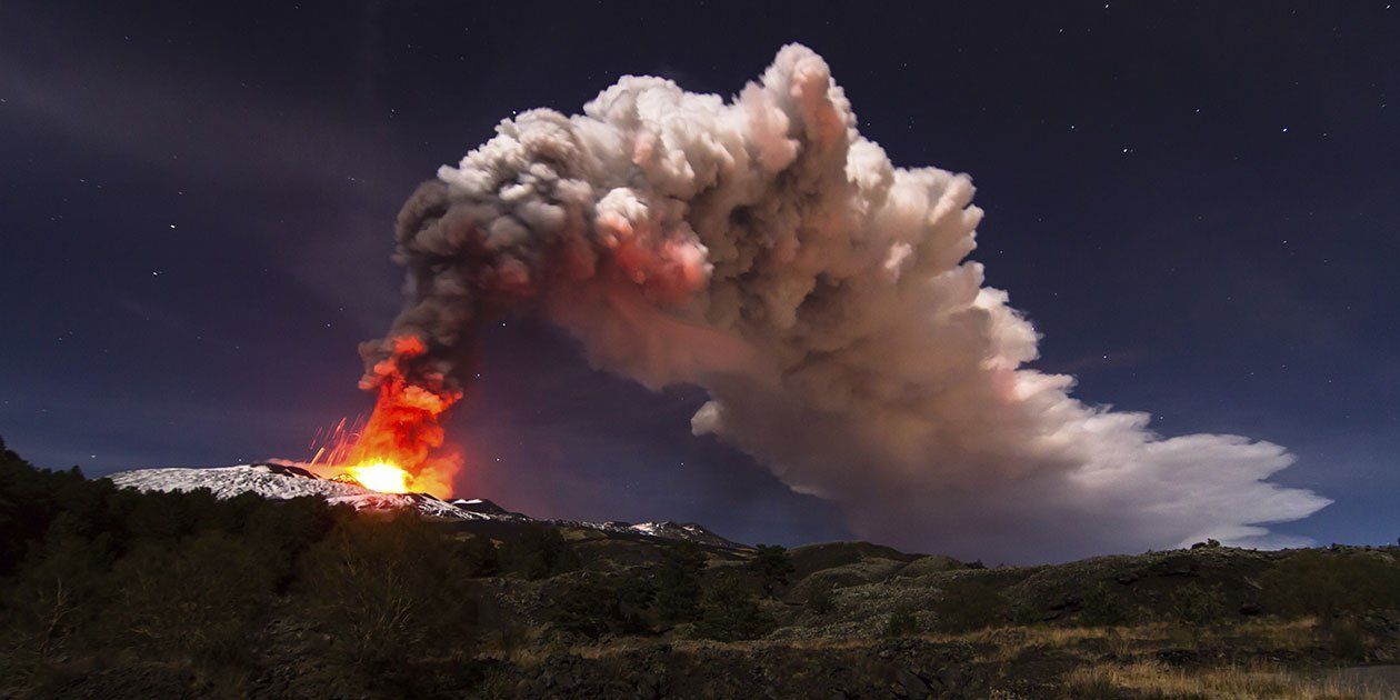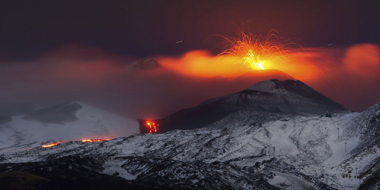 A'Muntagna, wie die Einheimischen den Ätna, den größten aktiven Vulkan Europas, nennen, erreicht eine Höhe von 3.350 Metern und ist von vielen Städten im Osten Siziliens aus zu sehen.